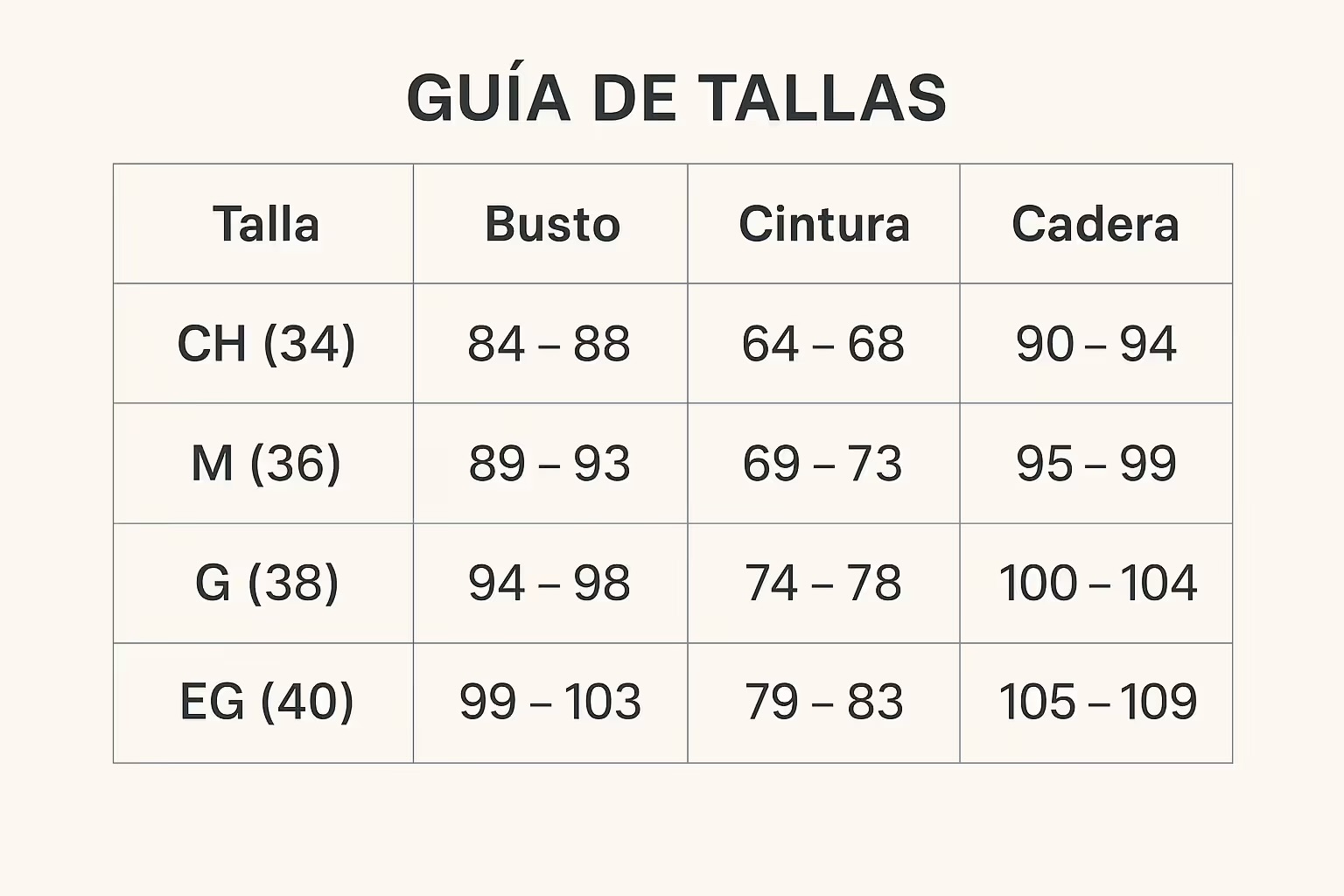Tallas disponibles